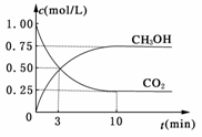 测得CO2和CH3OH(g)的浓度随时间变化如图所示。