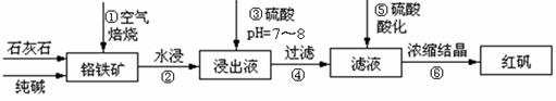 (1)步骤①应将反应物装在 (填仪器名称)中焙烧;步骤④需要用到的玻璃仪器 ;焙烧时有1mol铬铁矿(FeO·Cr2O3)参与反应时电子转移数为 。