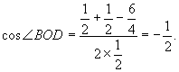 解析:设AC、BD交于O点,则BO⊥AC 且DO⊥AC,在折起后,这个垂直关系不变,因此∠BOD是二面角B-AC-D的平面角. 由于△DOB中三边长已知,所以可求出∠BOD: