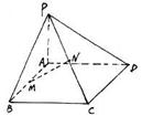 ∴|AB|=R, |AC|=R, |BC|=. 在△ABC中,由于AB2+AC2=BC2. ∴∠BAC=90°,BC是小圆ABC的直径. ∴|ED|= 从而|OD|=. 故应选B. 72. 如图,四棱锥P-ABCD中,ABCD是正方形,PA⊥底面ABCD,该图中,互相垂直的面有 A.4对 B.5对 C.6对 D.7对 答案(D) 解析:要找到一个好的工作方法,使得计数时不至于产生遗漏 73. ABCD是各条棱长都相等的三棱锥.M是△ABC的垂心,那么AB和DM所成的角等于______