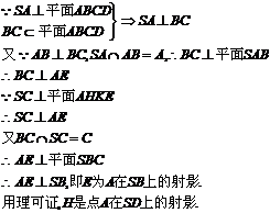 77. .如图,ABCD为正方形,过A作线段SA⊥面ABCD,又过A作与SC垂直的平面交SB、SC、SD于E、K、H,求证:E、H分别是点A在直线SB和SD上的射影。(12分)