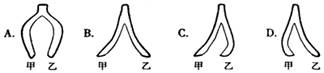 11.将带“皮”的细嫩的茎纵切后插入两烧杯中,如右图所示。已知b侧的细胞壁比a侧的细胞壁薄,易伸展,判断30 min后可能出现的形状是( )