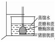 14.某渗透装置如右图所示,烧杯中盛放有蒸馏水,图 中猪膀 胱膜允许单糖透过。倒置的长颈漏斗中先装入蔗糖溶液,一定时间后再加入蔗糖酶。从理论上分析,该实验过程中最可能出现的现象是
