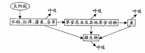 (4)画出稻一萍一鱼生态系统的能量流动图(不考虑与人的联系)。