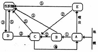 右图为“岩石圈物质循环示意图”。读图回答13-14题。