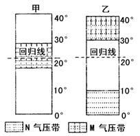 15.甲图所示季节各纬度带气流运动的说法正确的是( )