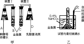 实验一:小球藻在适宜条件下进行光合作用而繁殖很快。在相同培养液中,以图中的装置Ⅰ和Ⅱ(密封环境)分别培养小球藻,将两个装置都放在阳光下,一定时间后,观察装置Ⅰ和Ⅱ发生的变化。