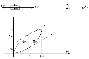 解析:处理本题的关键是对物体进行受力分析和运动过程分析,使用图象处理则可以使问题大大简化。对A、B在水平方向受力分析如图,F1为弹簧的拉力;当加速度大小相同为a时,对A有,对B有,得,在整个过程中A的合力(加速度)一直减小而B的合力(加速度)一直增大,在达到共同加速度之前A的合力(加速度)一直大于B的合力(加速度),之后A的合力(加速度)一直小于B的合力(加速度)。两物体运动的v-t图象如图,tl时刻,两物体加速度相等,斜率相同,速度差最大,t2时刻两物体的速度相等,A速度达到最大值,两实线之间围成的面积有最大值即两物体的相对位移最大,弹簧被拉到最长;除重力和弹簧弹力外其它力对系统正功,系统机械能增加,tl时刻之后拉力依然做正功,即加速度相等时,系统机械能并非最大值。