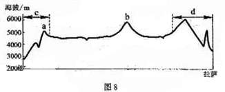 44.(1)图4示意格尔木至拉萨的地形剖面,读图4回答问题。