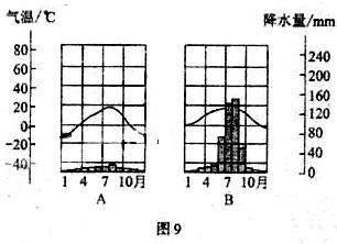 A、B两幅图中,反映拉萨气候资料的是 图,因为 。