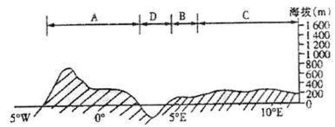 (1)注入D海域、运输最繁忙的河流是 ,该河流流经的国家中,地中海型农业发达的是 。