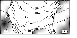 32.下面3图分别表示某区域1月、7月平均气温和年降水量的分布,图中a、b、c三点分别表示三个城市。读图回答以下问题 8′