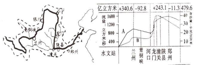 (1)图中A、B两条曲线中,表示流量曲线的是______,表示含沙量曲线的是______。