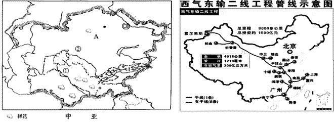 材料二:2009年12月13日中国国家主席胡锦涛出访中亚,14日与土、哈、乌三国总统在土库曼斯坦阿姆河右岸举行仪式,共同打开“中国-中亚天然气管道”启动阀门。“中国-中亚天然气管道”起始于土库曼斯坦-乌兹别克斯坦边境,经乌兹别克斯坦、哈萨克斯坦到达中国霍尔果斯,该天然气管道将与正在建设的“西气东输”二期管线相连,构成一条横贯东西的中国天然气“主动脉”。