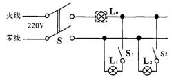 10.图是新安装的照明电路,已知两个并联灯泡的灯头接线存在一处故障。小明学电工的检修方法,在保险丝处接入一个“220V、40W”的灯泡。当只闭合S、S1时L0和L1都呈暗红色;当只闭合S、S2时,L0正常发光,L2不发光。由此可以确定