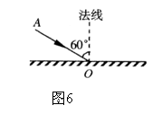 11、在图6中,根据给出的入射光线AO画出反射光线OB,并标出反射角及其度数。