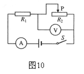 17、在图10所示的电路中,电源电压为15V且不变,滑动变阻器R2上标有“20Ω 2A”字样,闭合电键S后,电流表的示数为0.2A,电压表的示数为2V。求: