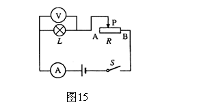 26、小华同学在“测定小灯泡的功率”实验中,所用电源电压为4.5V、7.5V和9V中的一个,滑动变阻器上标有”20Ω 2A”字样,小灯泡标有“4.5V”字样,估计小灯泡的额定功率小于1.5W。他按图15连接好电路,先将变阻器的滑片移至________端(选填“A”或“B”),然后闭合电键S,再移动变阻器的滑片P,观察到小灯泡发光逐渐变___________(选填“亮”或“暗”)。当小灯泡正常发光时,变阻器的滑片P恰好在中点上(即连入电路的电阻为10Ω)。小华所用的电源电压为_______V,小灯泡的额定功率为__________W。