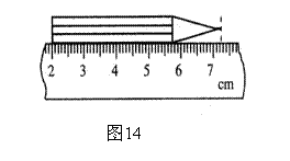 25、用图14所示的刻度尺测量铅笔的长度,该刻度尺的最小刻度为_________mm,所测铅笔的长度为 5.25______________(填单位)。
