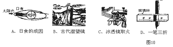 12. 如图10所示的四个事例中,由光直线传播形成的是( )