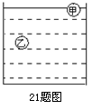 21.如图所示,把甲、乙两个体积相同的实心球投入水中,甲球漂浮,乙球
