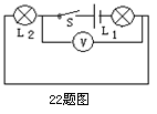 22.如图所示的电路中,电源电压为6V,闭合开关S,当灯泡L1和L2其中一个出现短路或断路