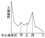C.逐渐升高--人口密度 D.逐渐降低--土地价格