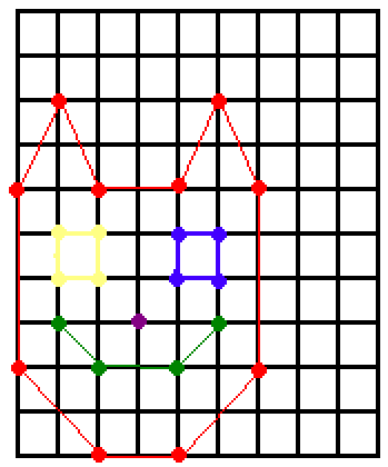 (2,0),(4,0),(6,2),(6,6),(5,8),(4,6),(2,6),(1,8),(0,6),(0,2),(2,0);②