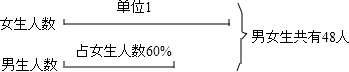 男生女生共有48人,男生的人数是女生的60%,男生女生各多少人?(先画出单位“1”,再列出数量关系)