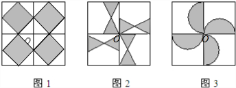 解答:解:把如图所示图形中左上角的图案绕着中心O旋转90°,180°,270°,画出的所得图案如下: