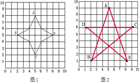 (2)根据数对表示位置的方法,把A(5,9)B(2,1)C(9,6)D(1,6)E(8,1)分别在平面图中标出来,并把它们连接起来组成一个封闭图形,如图所示: