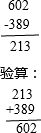 ⑤602-389=213;
