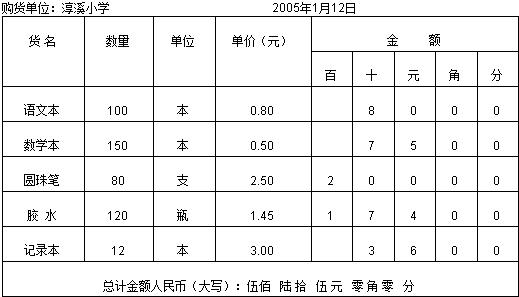 | 圆珠笔 | 80 | 支 | 2.50 | |||||