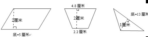 答:平行四边形的面积是10平方厘米,梯形的面积是7平方厘米,三角形的面积是6.5平方厘米.