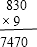 (2)830×9=7470;