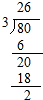 (2)80÷3=26…2;
