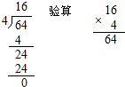 (6)64÷4=16.