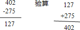 ②402-275=127;