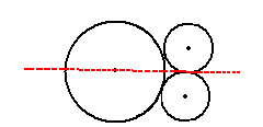 有一条对称轴,过大圆圆心和两小圆的交点