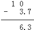 10-3.7=6.3