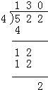 522÷4=130…2
