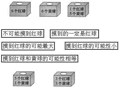 猜一猜,如果任意摸一个球都是红的吗?用线连一连.
