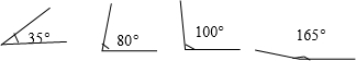 用量角器画出35°,80°,100°和165°的角.