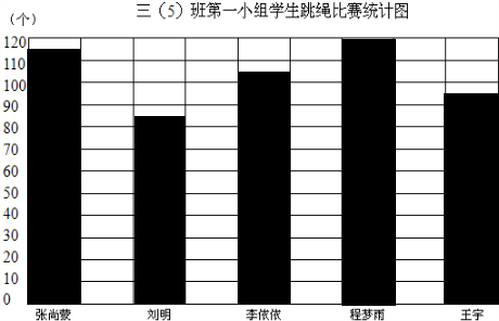 个.分析:先用统计表提供的数据制作统计图,有统计表可以发现他们跳绳的个数在85到120个之间,用最多的减去最少的就是成绩最好的与成绩最差的相差的个数,求学生的平均跳绳个数成绩,就是先把五位学生的跳绳个数加在一起再除以5,求出的商就是平均跳绳个数.