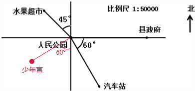 (4)根据少年宫与人民公园的实际距离,根据图所标注的比例尺即可求出少年宫与人民公园的图上距离,少年宫的方向即可确定少年宫的图上位置.