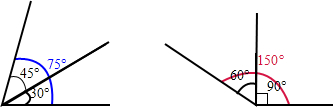 用三角尺画出75度,150度的角.