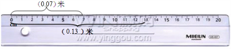 分析:上面的括号所表示的长度是7厘米,低级单位厘米化高级单位米除以进率100;下面的括号所表示的长度13厘米,同样低级单位厘米化高级单位米除以进率100.