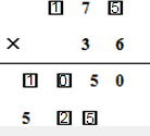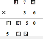 三位数与6相乘,6×7=42,但是个位上却是5,说明因数三位数个位与6相乘时进了3,所以因数三位数的个位上是5,如图: