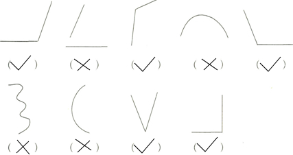 下面图形中,是角的在( )里画“√”,不是角的在( )里画“×”