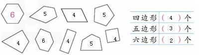 数数下面的图形各有几条边,照样子写在图形上,再填表。